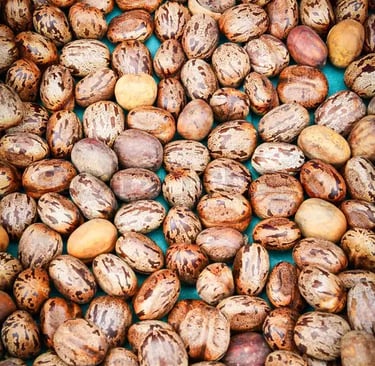 Castor seeds are carefully sourced from experienced vendors and farmers with proven quality standards. After selection, the seeds are sun-dried under controlled natural conditions to remove excess moisture. The oil is extracted slowly using our wooden marachekku, maintaining purity and natural properties. Our castor oil is known for its thickness, clarity, and traditional benefits.