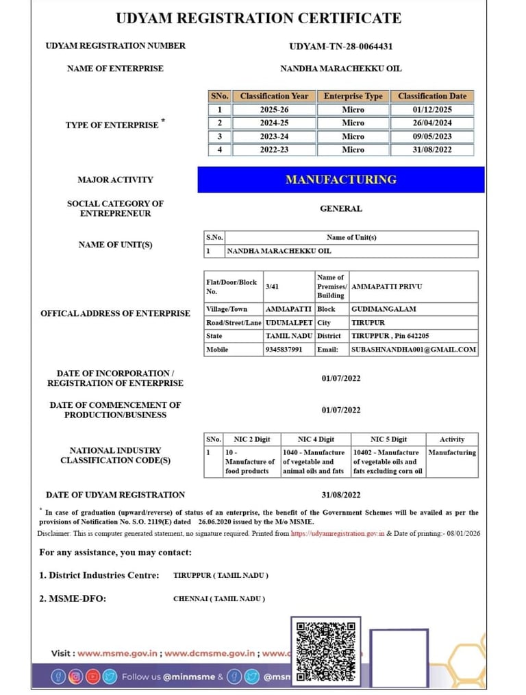 At NANDHA MARACHEKKU OIL, we don’t just sell oil—we pass on a tradition of purity from generation to generation.